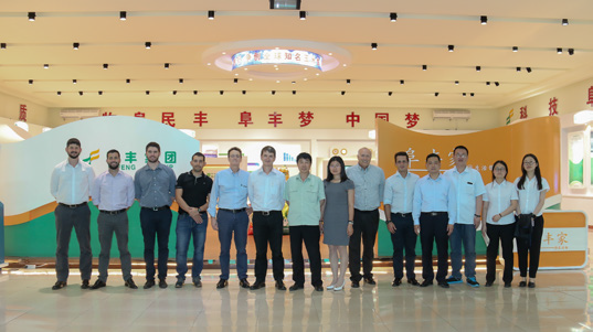 6 月15 日,进出口公司副总经理姚慧娟陪同巴西Chr.Olesen 和JBS 客户一行9 人到访东北江南登陆入口-江南online(中国)公司,通过实地考察进一步了解公司及产品,以便于将来业务的长期深入合作。